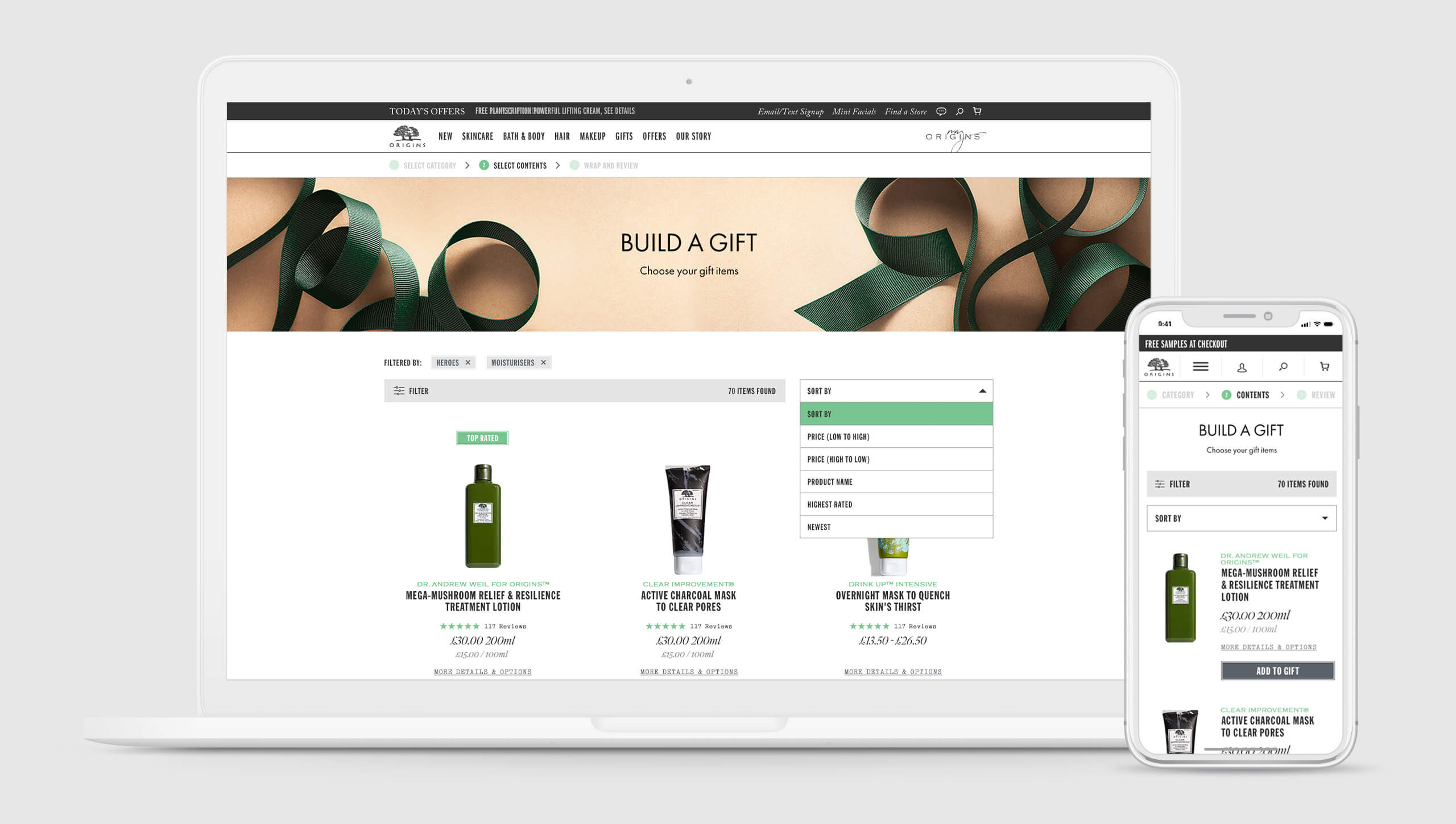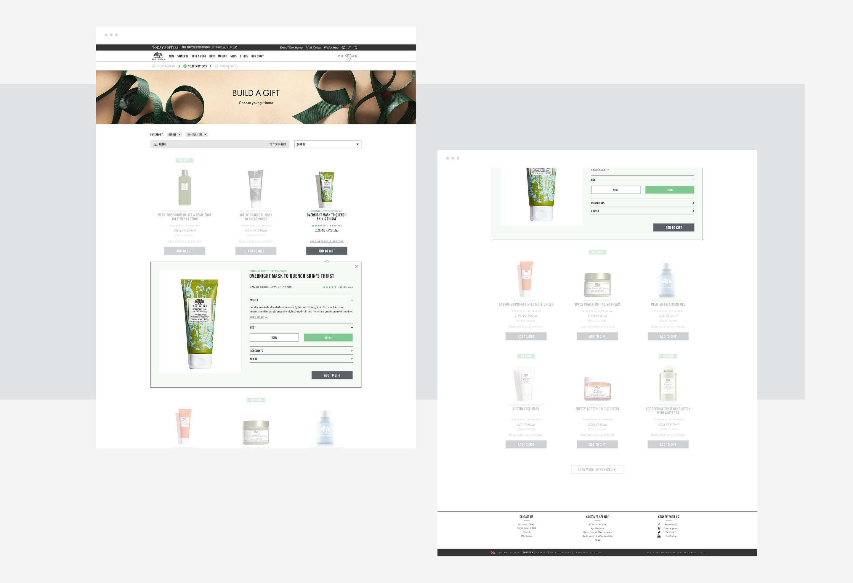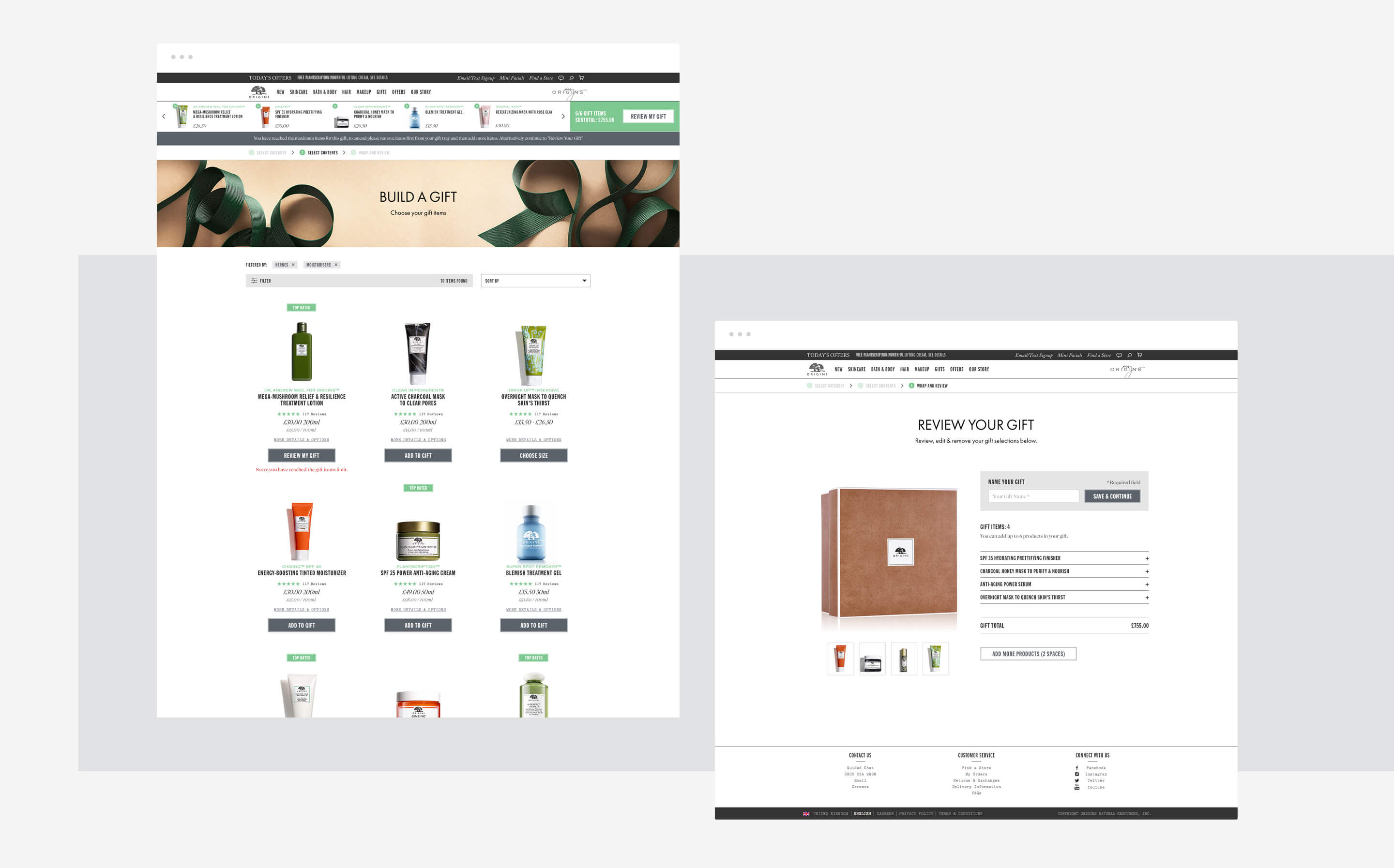 We were asked to help design the new site feature for Origins to help their customers create custom gifts for themselves or loved ones. We worked on intial wireframes up to the final UI designs.